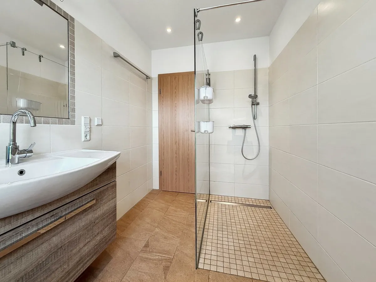 -ebenerdige Luxus-Dusche mit Glaswand