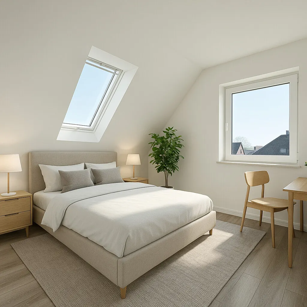 Die feine Wohnung (A+) wird 100% schlüsselfertig übergeben und verfügt über folgende Aufteilung: Privater Eingang, Diele, großzügiger Wohn- und Essbereich mit offener Küche und direktem Zugang zum sonnigen Balkon, Schlafzimmer, Kinder-/Gästezimmer, modernes Tageslicht Badezimmer mit ebenerdiger Dusche. Der optionale Spitzbodenausbau (Abstellraum) ist genehmigt und bietet zusätzliche Nutzfläche.