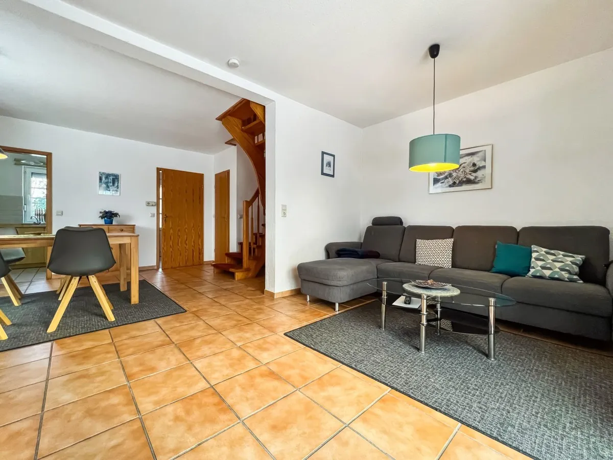 Erdgeschoss: Diele, Aufgang, Gäste-WC, Abstellraum mit Waschmaschine, schickes Wohn/-Esszimmer zum Garten, Küche mit Einbauküche, massiver Außen-Abstellraum, PKW-Stellplatz mit WallBox.