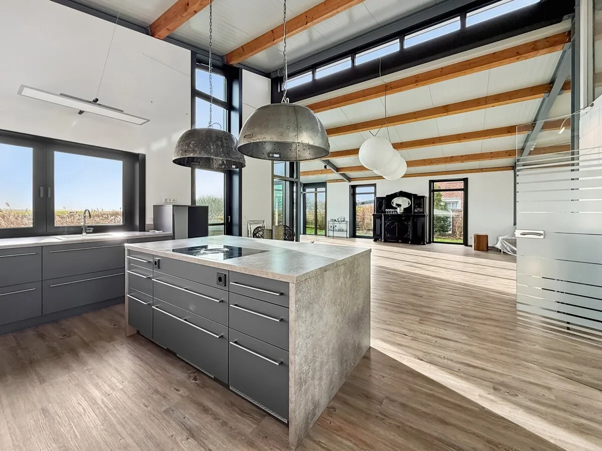 Die hochwertige Küche mit Induktionskochfeld und integrierter Abluft fügt sich harmonisch in den großzügigen Wohnraum ein und eröffnet den Blick auf die Terrasse und den pflegeleicht angelegten Garten mit freiem Blick in die Natur. Ein Schlafzimmer mit Ankleide, zwei exklusive Badezimmer, ein Gästezimmer oder Büro sowie ein großer Hauswirtschaftsbereich, Kühlhaus und direkter Zugang zur geräumigen Garage mit elektrischem Sektionaltor schaffen optimale Bedingungen für komfortables Wohnen.