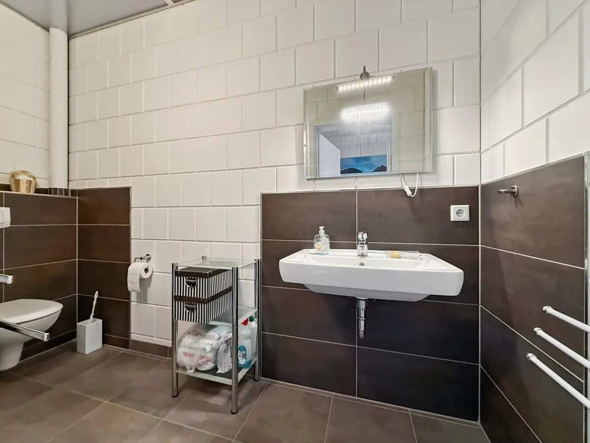 Der angrenzende Gewerbetrakt aus dem Bj. 2013 mit ca. 400 m² besteht aus einer modernen Stahlhalle mit etwa 285 m² Fläche, durchgehender Wärmedämmung und einem hohen Einfahrtstor, das auch für Boote oder größere Fahrzeuge geeignet ist. Ergänzt wird die Halle durch ein Laden- und Bürosegment im Erdgeschoss mit ca. 50 m² sowie weitere Büro- und Aufenthaltsräume im Obergeschoss mit Küche und Badezimmer auf ca. 63 m². Eine leistungsstarke Photovoltaikanlage mit 45,88 kWp erzeugt eine jährliche Vergütung von rund 5.000 Euro und bietet eine attraktive Einnahmequelle.