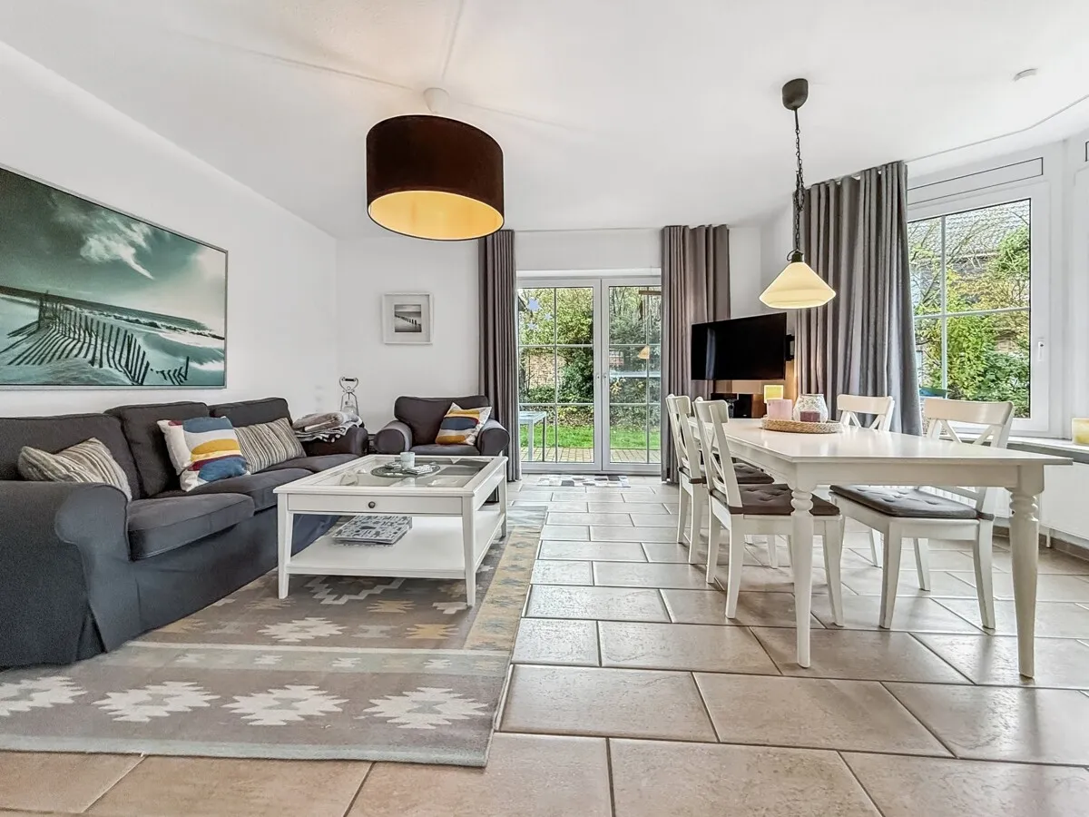 Beim Betreten des Hauses empfängt Sie ein einladender Flur mit Windfang und Gäste-WC. Weiter geht es in den repräsentativen Wohn- und Essbereich mit seinen großzügigen Fensterfronten mit teilweise halbrunden Elementen, die dem Raum eine ganz besondere, fast maritime Leichtigkeit verleihen. Die sonnige Südwest-Terrasse schließt harmonisch an den Wohnbereich an und schafft einen fließenden Übergang zwischen Innen und Außen. Die Einbauküche wurde 2022 vollständig erneuert und passt jetzt perfekt zum Stil des Hauses. Ergänzend steht ein kleiner Abstellraum unter der Treppe zur Verfügung, der Platz für Waschmaschine und Haushaltsgeräte bietet.