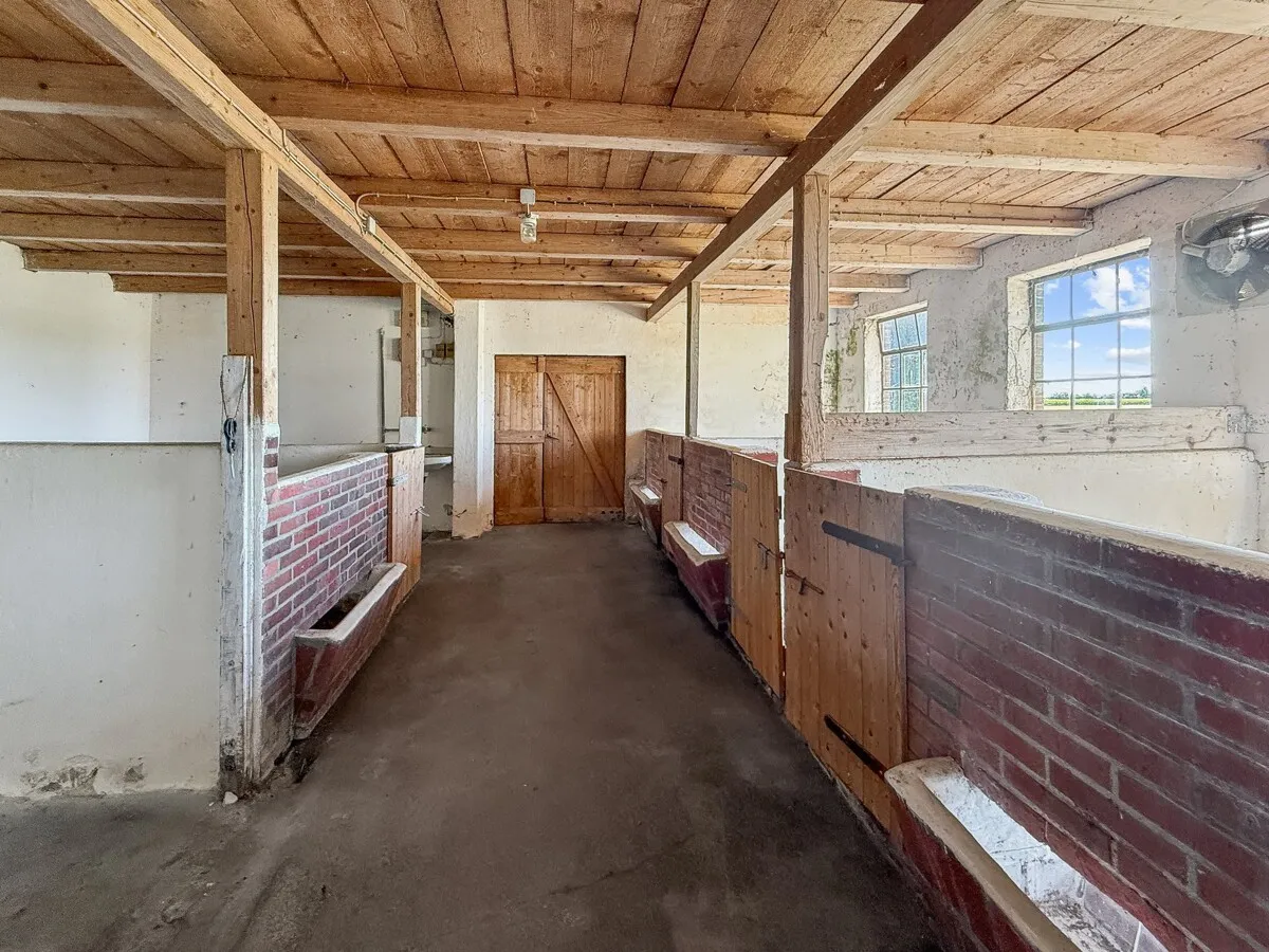 Zu dem Resthof gehören außerdem umfangreiche Wirtschaftsflächen: Stallungen mit ca. 250 m² Nutzfläche, die früher für Pferde- und Nutztierhaltung genutzt wurden, sowie eine Doppelgarage mit ca. 40 m². Das Grundstück umfasst 3.303 m² und überzeugt durch seine Weitläufigkeit und schöne Lage im Grünen. Zusätzlich besteht die Möglichkeit, angrenzende Flächen zu erwerben: ca. 1,126 ha an der Ostseite und ca. 2,4430 ha an der Westseite. Damit eignet sich das Anwesen besonders für Natur- und Tierliebhaber, die viel Platz für individuelle Nutzungsideen suchen.