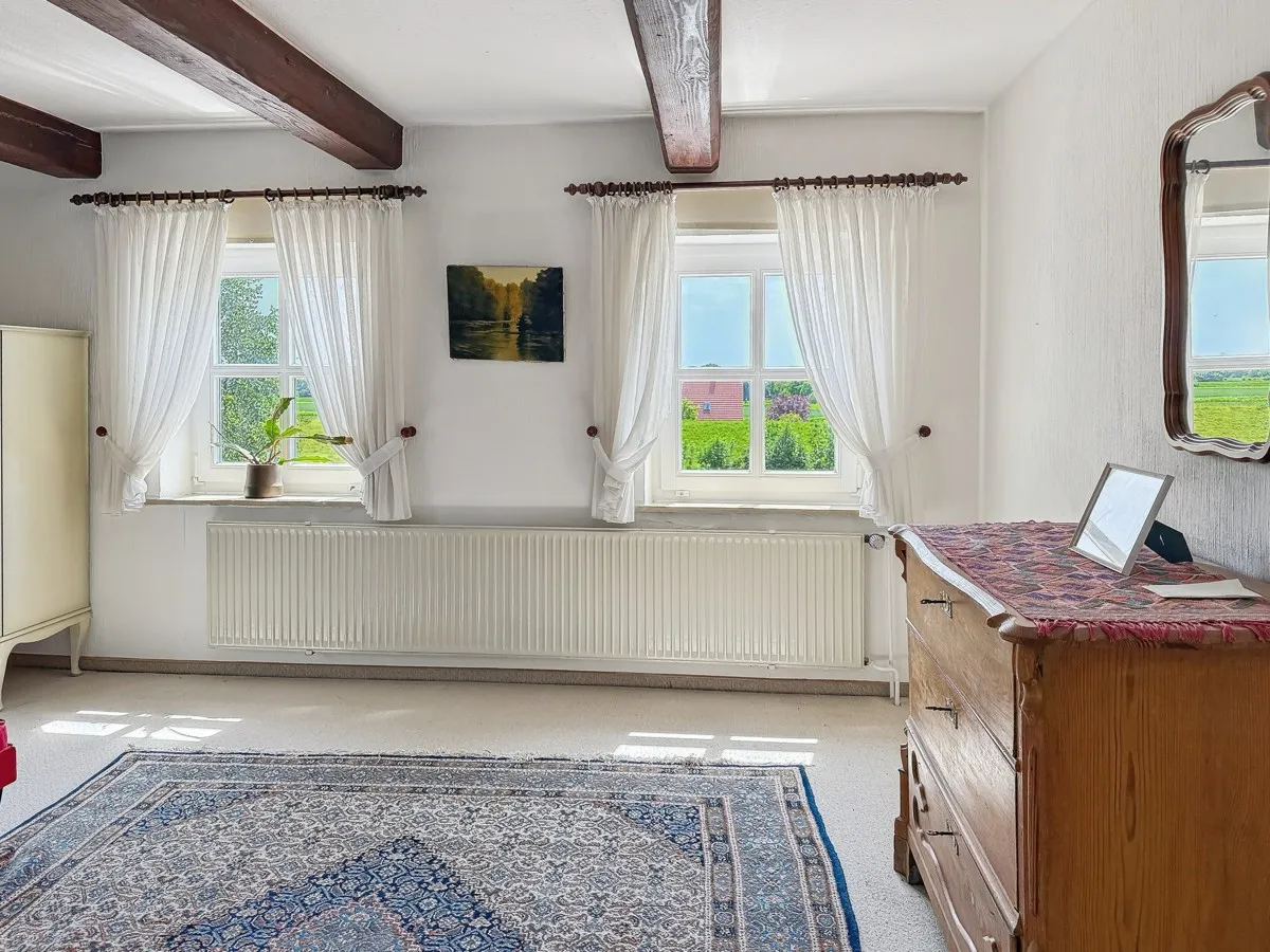 Das Gebäude erstreckt sich über drei Ebenen mit jeweils einer abgeschlossenen Wohneinheit. Im Erdgeschoss befindet sich eine Wohnung mit einer Wohnfläche von ca. 104 m². Über einen separaten Zugang gelangt man in die Wohnung im Obergeschoss, die etwa 100 m² umfasst. Den oberen Abschluss bildet der ausgebaute Spitzboden mit weiteren ca. 90 m² Wohnfläche. Jede der drei Ebenen hat ihren ganz eigenen Charakter, geprägt von sichtbarem Mauerwerk, historischen Holzbalken und großzügigen, lichtdurchfluteten Räumen mit Hafenblick.