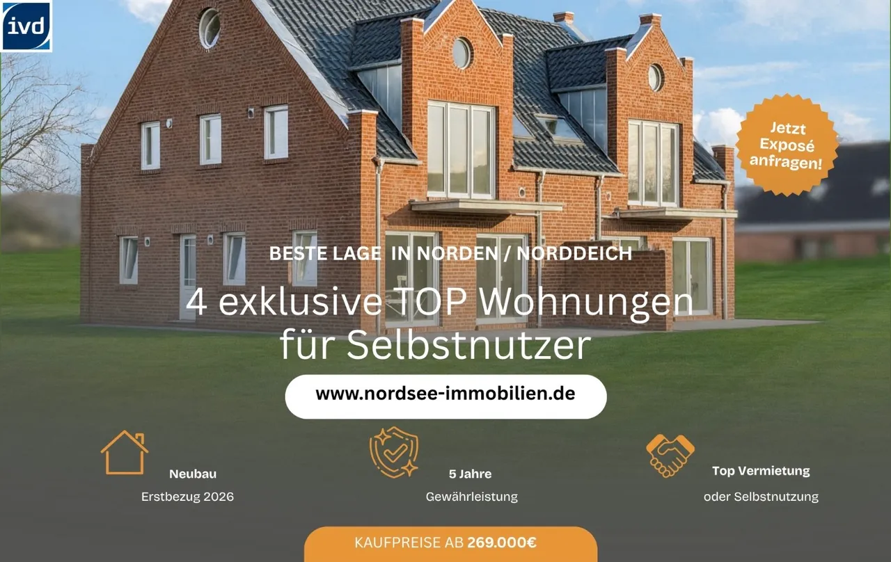 Das elegante Quartier mit 4 Wohnungen überzeugt durch seinen exklusiven Baustil „Kapitänshaus“. Besonders zu beachten ist reizvolle, ruhige Nachbarschaft, die fußläufige Nähe zur Innenstadt von Norden mit ihren Geschäften, Restaurants, Marktplatz und vielen kulturellen Einrichtungen.