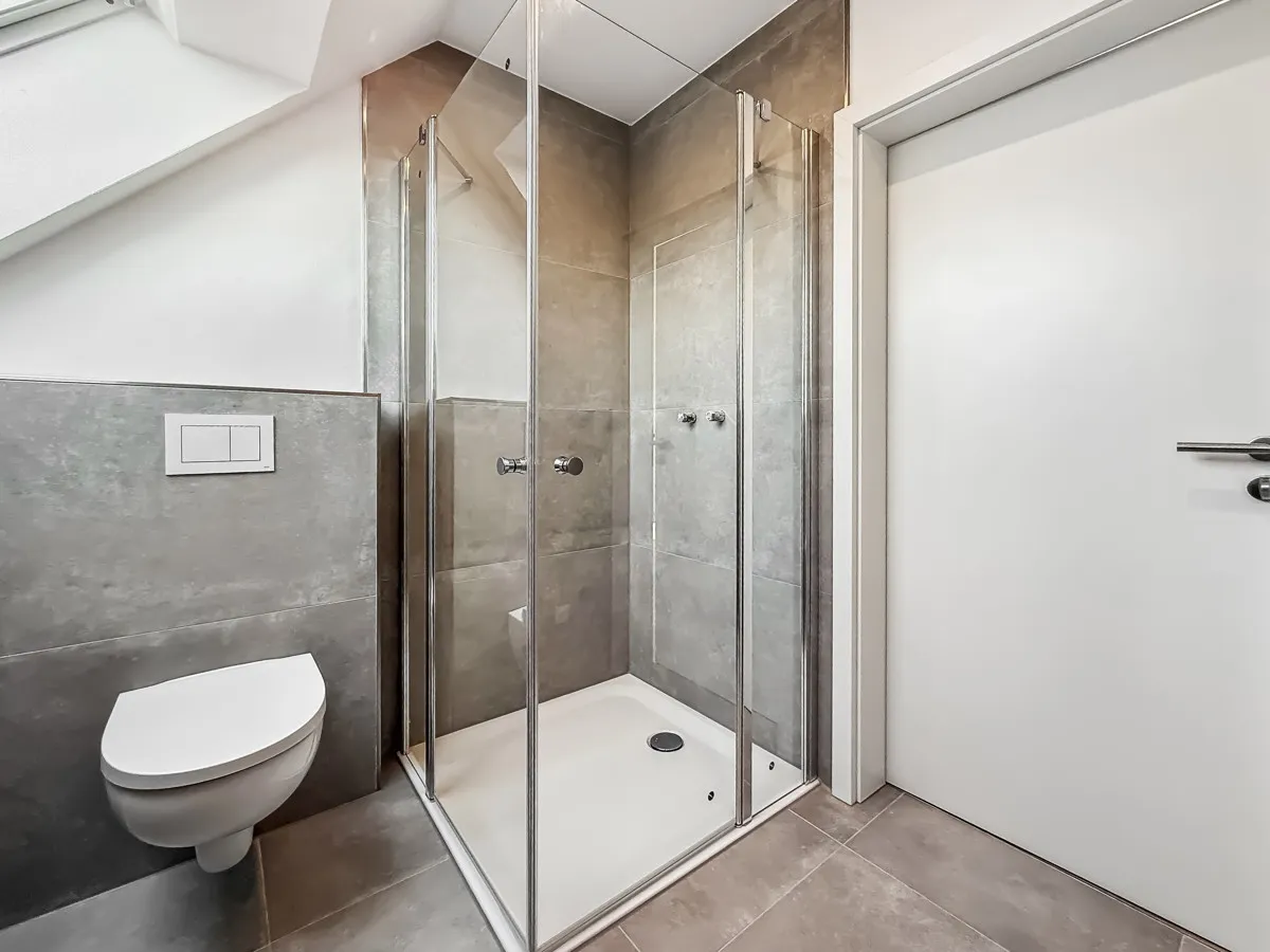 Die feine Wohnung (A+) wird 100% schlüsselfertig übergeben und verfügt über folgende Aufteilung: Privater Eingang, Diele, großzügiger Wohn- und Essbereich mit offener Küche und direktem Zugang zum sonnigen Balkon, Schlafzimmer, Kinder-/Gästezimmer, modernes Tageslicht Badezimmer mit ebenerdiger Dusche. Der optionale Spitzbodenausbau (Abstellraum) ist genehmigt und bietet zusätzliche Nutzfläche.