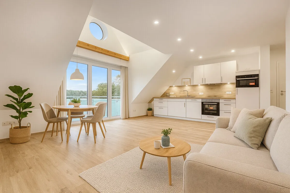 Das Neubauprojekt befindet sich im Herzen der Küstenstadt Norden, unmittelbar an einem ruhigen See und dennoch nur wenige Gehminuten von der Innenstadt entfernt. Der historische Marktplatz, die lebendige Fußgängerzone mit ihren kleinen Geschäften und Cafés sowie der beliebte Wochenmarkt sind schnell erreichbar und bieten ein charmantes, entspanntes Küstenflair.