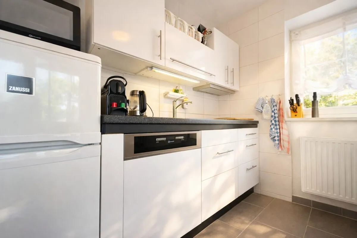 Bei der Ausstattung wurde großer Wert auf Qualität und ein stimmiges Gesamtkonzept gelegt. Helle Farbtöne und einheitliche Fliesen schaffen eine freundliche und zeitlose Atmosphäre. Eine eigene Gastherme sowie eine Fußbodenerwärmung sorgen für ein angenehmes Wohnklima zu jeder Jahreszeit. Die hochwertig ausgestattete Einbauküche sowie das gesamte Mobiliar sind bereits im Kaufpreis enthalten.