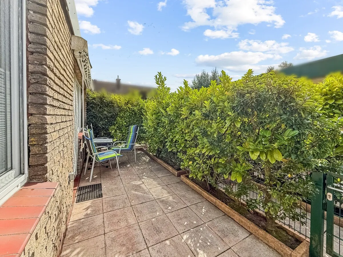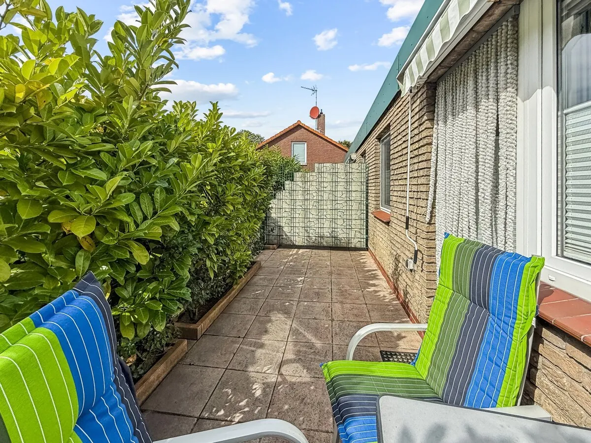 Neben dem Haupthaus steht noch eine Garage, die als Abstellraum für Reinigungskräfte umgebaut wurde zur Verfügung. Eine großzügige Terrasse mit Hecke und Zaun als Sichtschutz, eine kleine Grünfläche und eine gemütliche Sitzecke mit Außengrill runden das Bild ab.