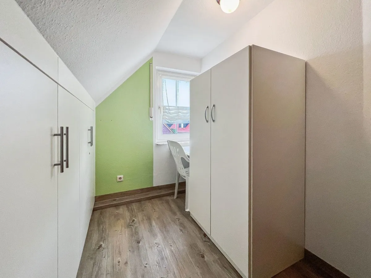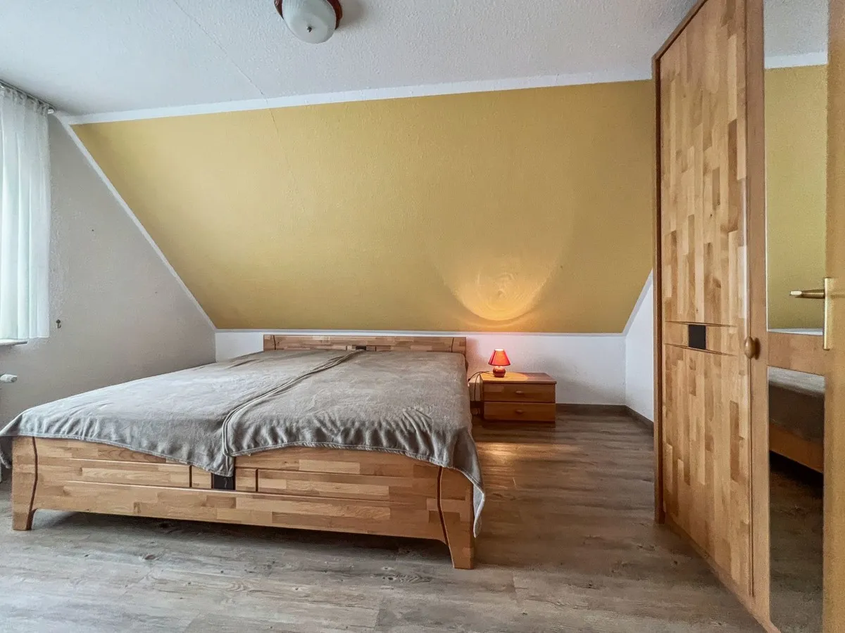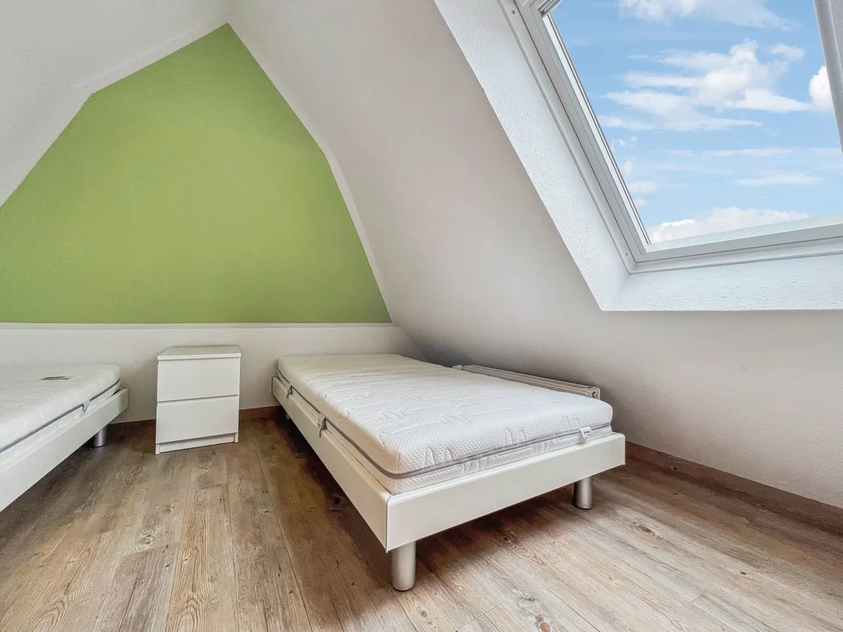 Der Wohnbereich erstreckt sich über zwei Etagen. Im Erdgeschoss befinden sich ein gemütliches Wohn-/Esszimmer mit Zugang zur sonnigen Terrasse und einem eingezäunten Garten. Eine separate Küche mit schicker Einbauküche, sowie ein Gäste-WC runden das Erdgeschoss ab. Im Dachgeschoss befindet sich ein geräumiges Schlafzimmer, Badezimmer mit Dusche, WC und WM, sowie ein Kinder/Gästezimmer mit Einbauschränken, über einer 1/4 Schwungtreppe geht es in den Spitzboden. Dieser bietet Ihnen eine zusätzliche Nutzfläche. Inventar und Mobiliar sind im Kaufpreis enthalten.