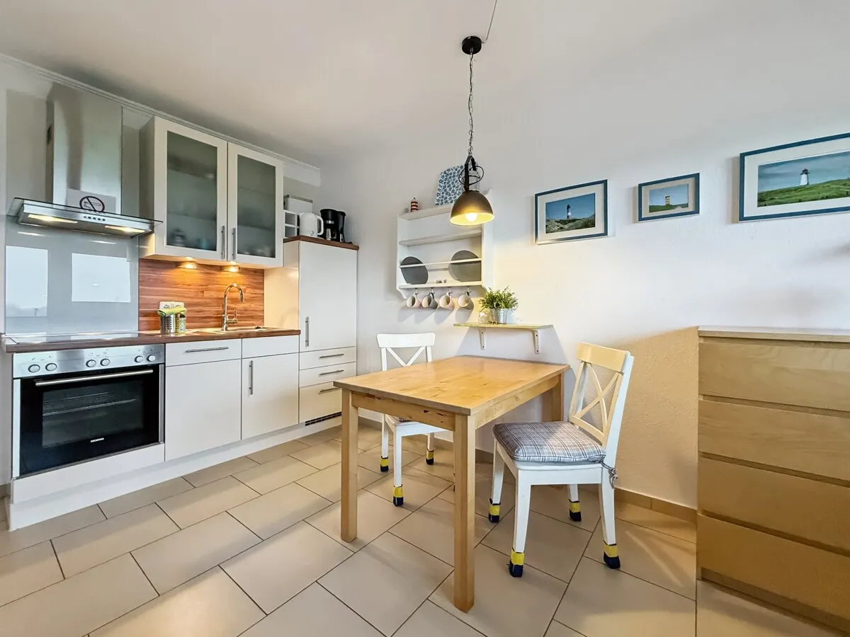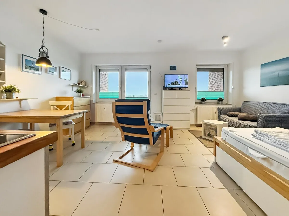 Helle Landhaustüren, teils mit Glaseinsatz, sowie einheitliche Feinsteinzeugfliesen verleihen den Räumen eine klare, zeitlose Eleganz. Die 2022 vollständig erneuerte Badgestaltung mit begehbarer Dusche und beheizbarem Handtuchhalter ergänzt den hohen Wohnstandard. Die Penthouse-Wohnung ist eine wahre Oase der Ruhe und bietet ein Wohngefühl, das man nur an der Nordsee findet – entspannt, lichtdurchflutet und mit einem Panorama, das jeden Tag besonders macht.
