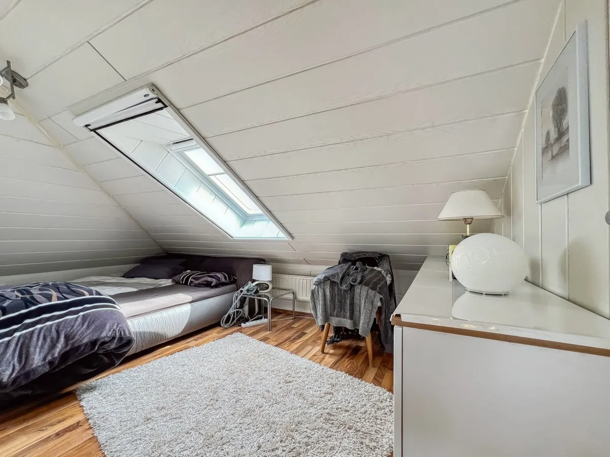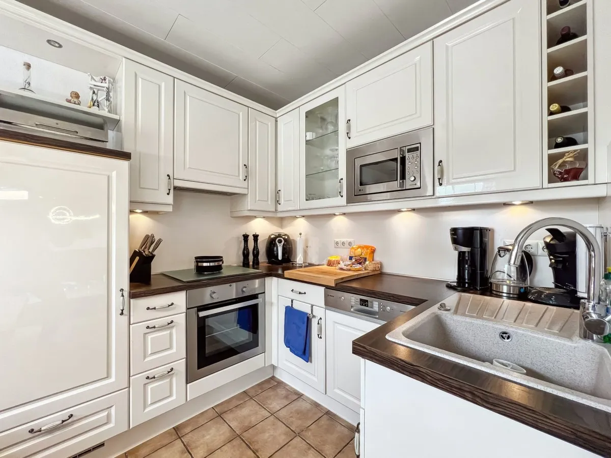 Erdgeschoss: Diele, Gästezimmer, Badezimmer, Schlafzimmer, Abstellraum, schickes Wohnzimmer mit Ausgang zur sonnigen Terrasse und dem schönen Garten, Küche mit moderner Marken-Einbauküche und Essbereich. Nutzfläche im Obergeschoss genutzt als Studio mit offener Küche und EBK, Schlafzimmer, Badezimmer mit Dusche/WC.