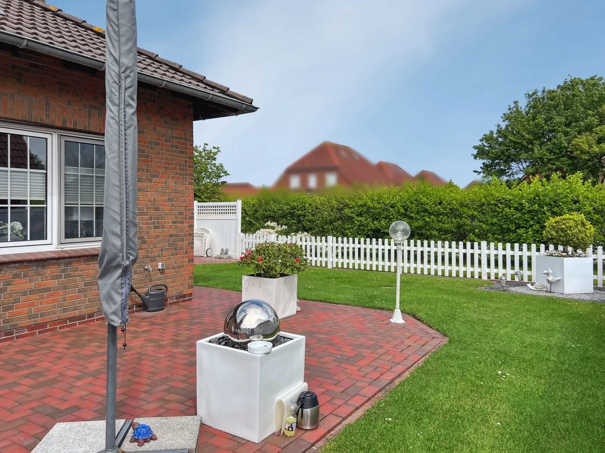 Ein Highlight bei dieser Immobilie ist der wunderschöne, eingezäunte Garten in Südausrichtung, welcher zum gemütlichen Verweilen einlädt: entspannen, genießen oder einfach die Seele baumeln lassen. Auch die schöne Terrasse inkl. Gartenmobiliar fügt sich perfekt ein und macht die kleine Nordseeoase perfekt. Ein idealer Erholungs- und Entspannungsort direkt an der ostfriesischen Nordseeküste.