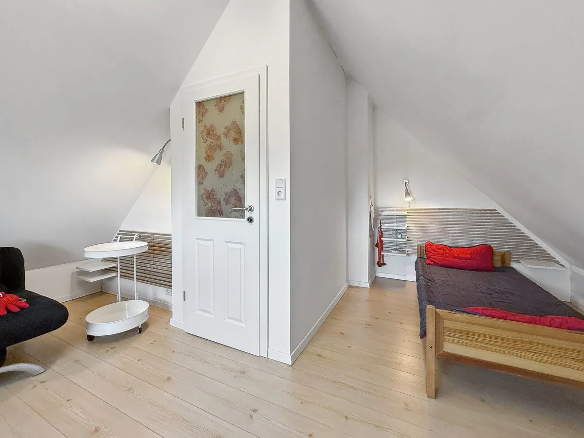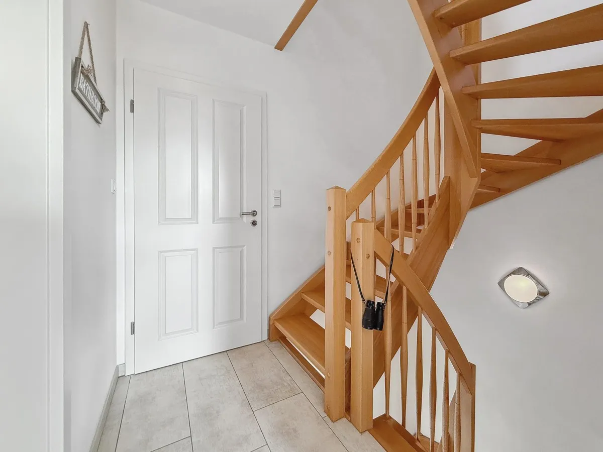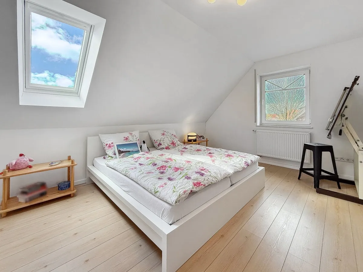Das Haus teilt sich in zwei Ebenen auf und bietet eine Wohn-/u. Nutzfläche von ca. 115 m². Das Erdgeschoss bietet einen großzügigen Wohn- & Essbereich mit Zugang zur sonnigen Terrasse, eine Küche inklusive einer hochwertigen „LEICHT Einbauküche“ NP ca. € 20.000, - mit Quooker-System, einen HWR/Vorratsraum sowie ein Gäste-WC. Das Obergeschoss teilt sich in ein Schlafzimmer, ein Kinder/Gäste- oder Arbeitszimmer auf. Ein großzügiges Badezimmer mit Wanne und Dusche komplettieren das Obergeschoss. Der Abstellraum im Spitzboden wurde zusätzlich aufwendig ausgebaut.