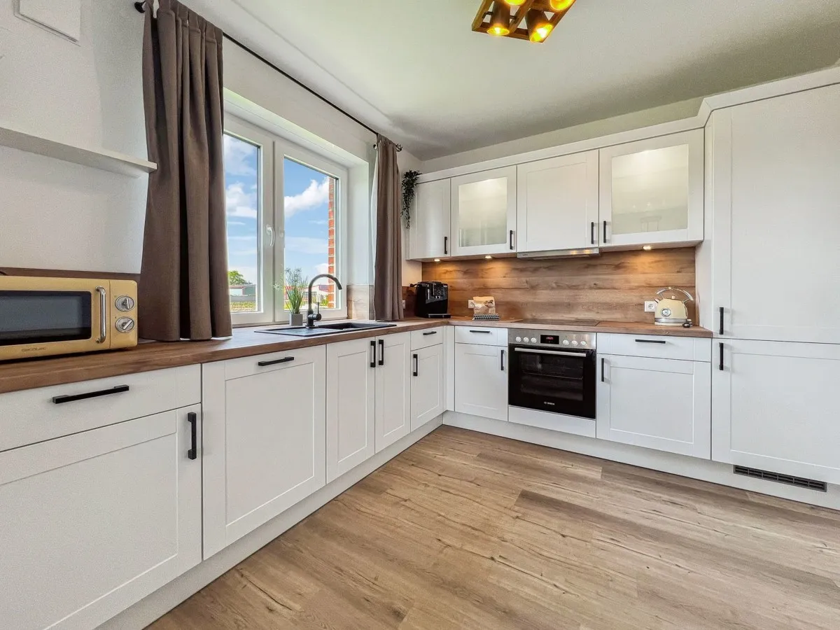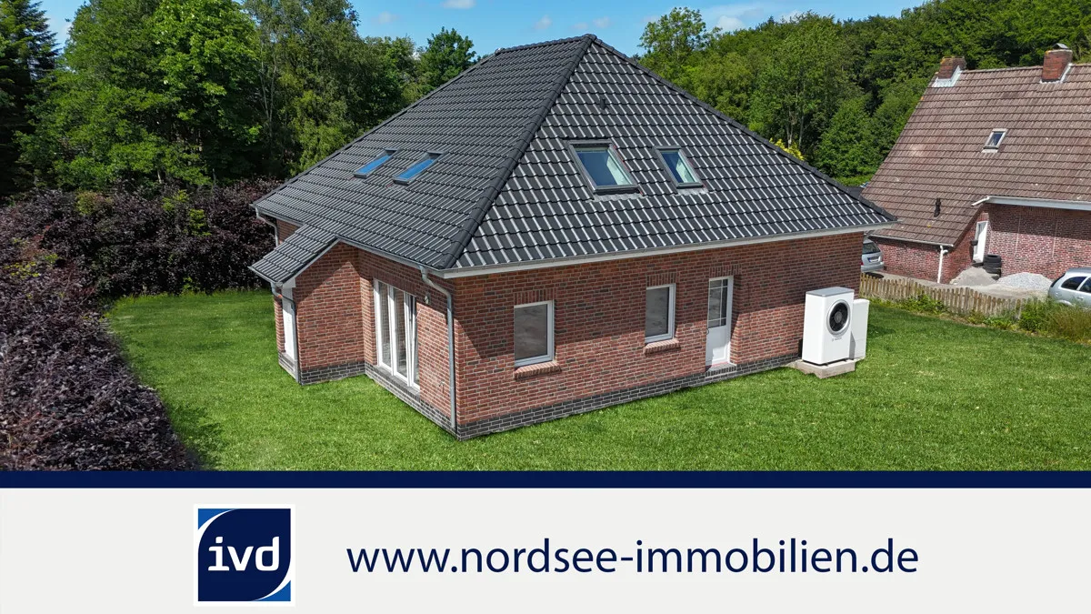 Die norddeutsche Architektur im Bungalowstil überzeugt, ebenso die elegante und doch traditionelle Bauweise. Das Haus besticht durch eine stilsicherere Ausstattung, große Fensterfronten, energieeffiziente Standards (Wärmepumpe) und hochwertige Materialien. Eine Fußbodenheizung in Verbindung mit einer dezentralen Belüftungsanlage mit Wärmerückgewinnung verstärken die Wohnqualität.