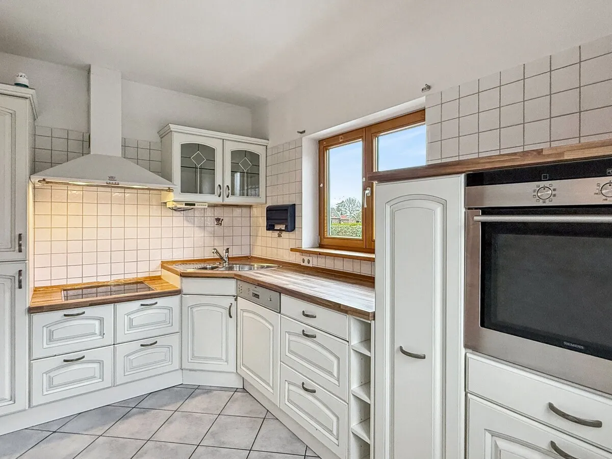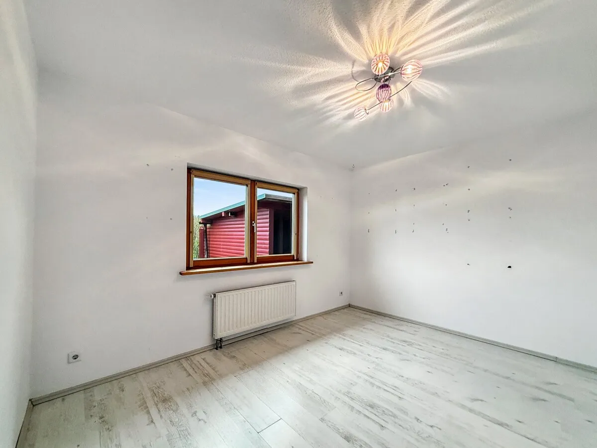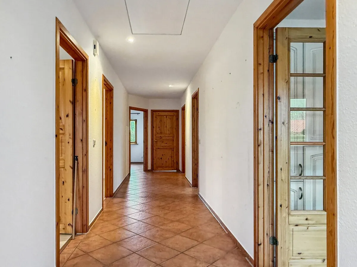 Der großzügige Eingangsbereich führt in eine helle Wohnküche mit moderner Einbauküche. Weiter geht es in das lichtdurchflutete Wohn- und Esszimmer mit gemütlichem Kaminofen und direktem Zugang zur sonnigen Terrasse. Drei weitere Räume – ein Schlafzimmer mit Blick in die freie Landschaft, ein Kinderzimmer sowie ein Gästezimmer/Büro – bieten vielfältige Nutzungsmöglichkeiten. Das Badezimmer ist mit Wanne und Dusche ausgestattet, das WC wurde wandhängend ausgeführt. Ergänzt wird das Raumangebot durch einen praktischen Hauswirtschaftsraum, in dem sich auch die Gas-Heizungsanlage mit Warmwasserspeicher befindet.