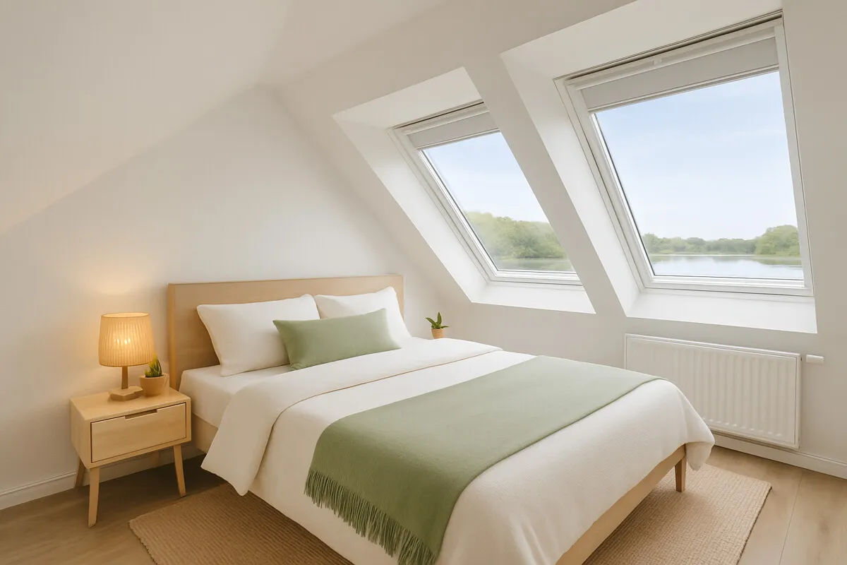 Die 3-fach isolierverglasten Fenster in den Wohnräumen sind mit elektrisch betriebenen Rollläden ausgestattet, und fügen sich harmonisch in die Architektur ein. Die großzügige Fensterfront zum See schafft einen beeindruckenden Panoramaeffekt und holt die maritime Atmosphäre direkt in Ihren Wohnbereich.