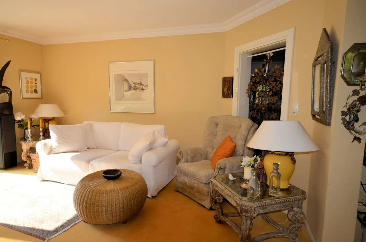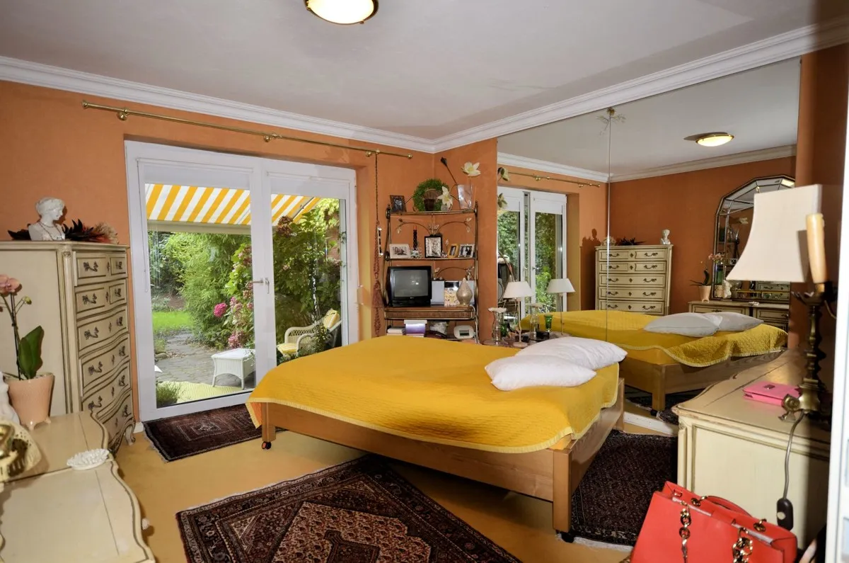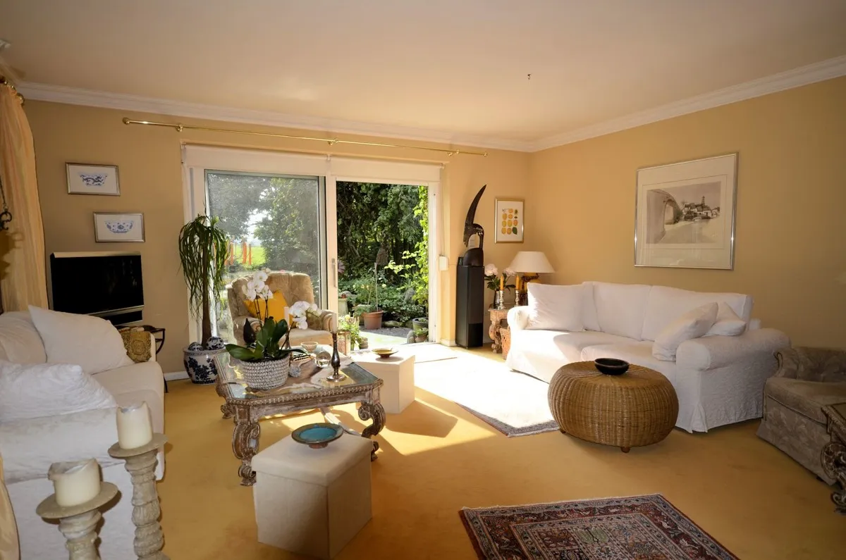 Die schöne Terrasse ermöglicht einen schönen Blick in den herrlichen Garten. Das ca. 800 m² große Grundstück ist komplett eingefriedet und bietet dem neuen Erwerber absolute Privatsphäre. Vor dem Haus gibt es außerdem zwei PKW-Stellplätze und eine Garage.